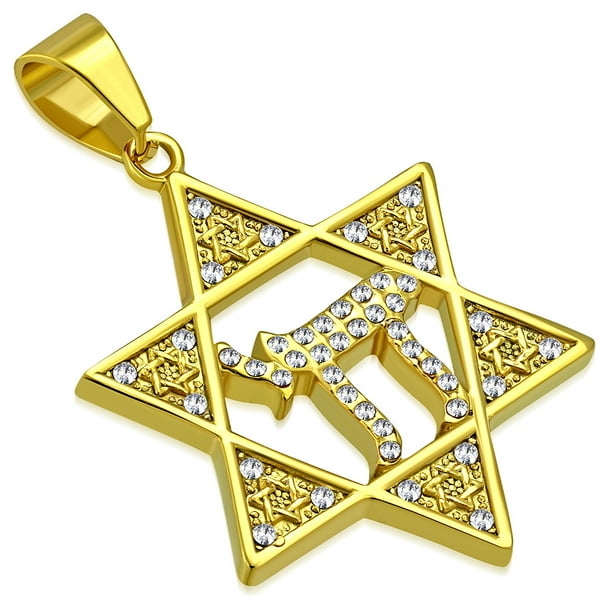 Stainless Steel Yellow Gold Tone Star Of David Chai Living Jewish Hebrew Cz Pendant Necklace Walmart Com