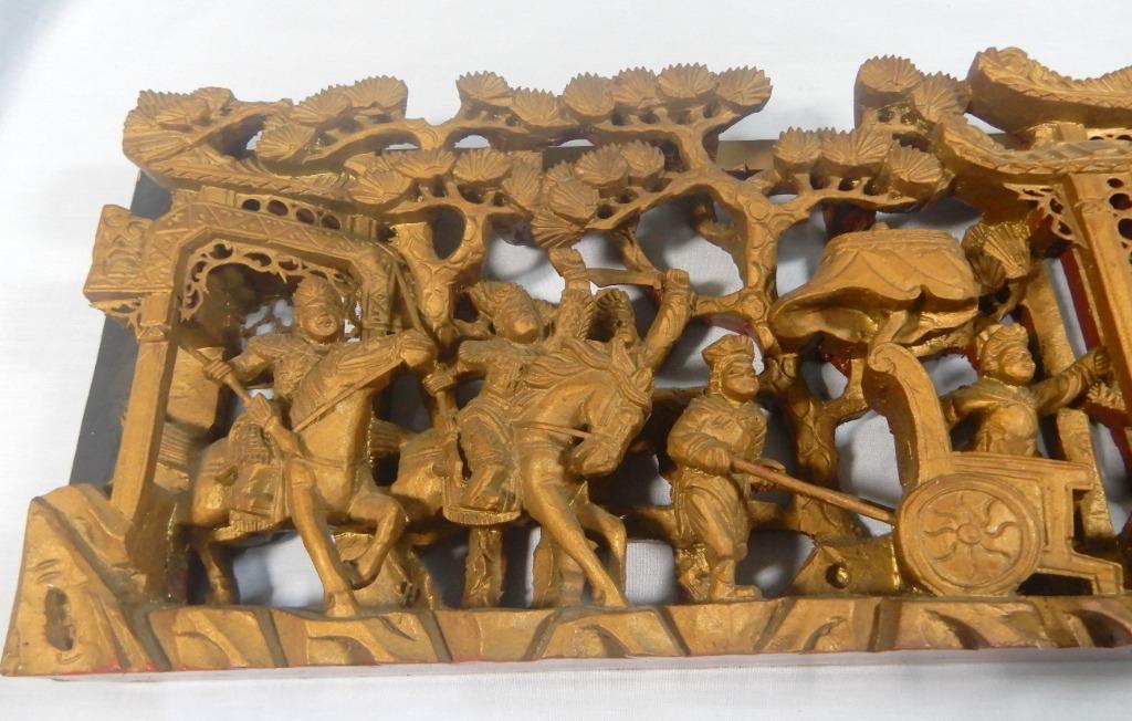 Antique Late Qing Period Chinese Lacquered Gilded Hand Carved Wooden Panel Warriors Garden Scene Hobbies Toys Memorabilia Collectibles Vintage Collectibles On Carousell